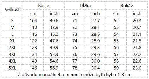 Tabuľka veľkostí: